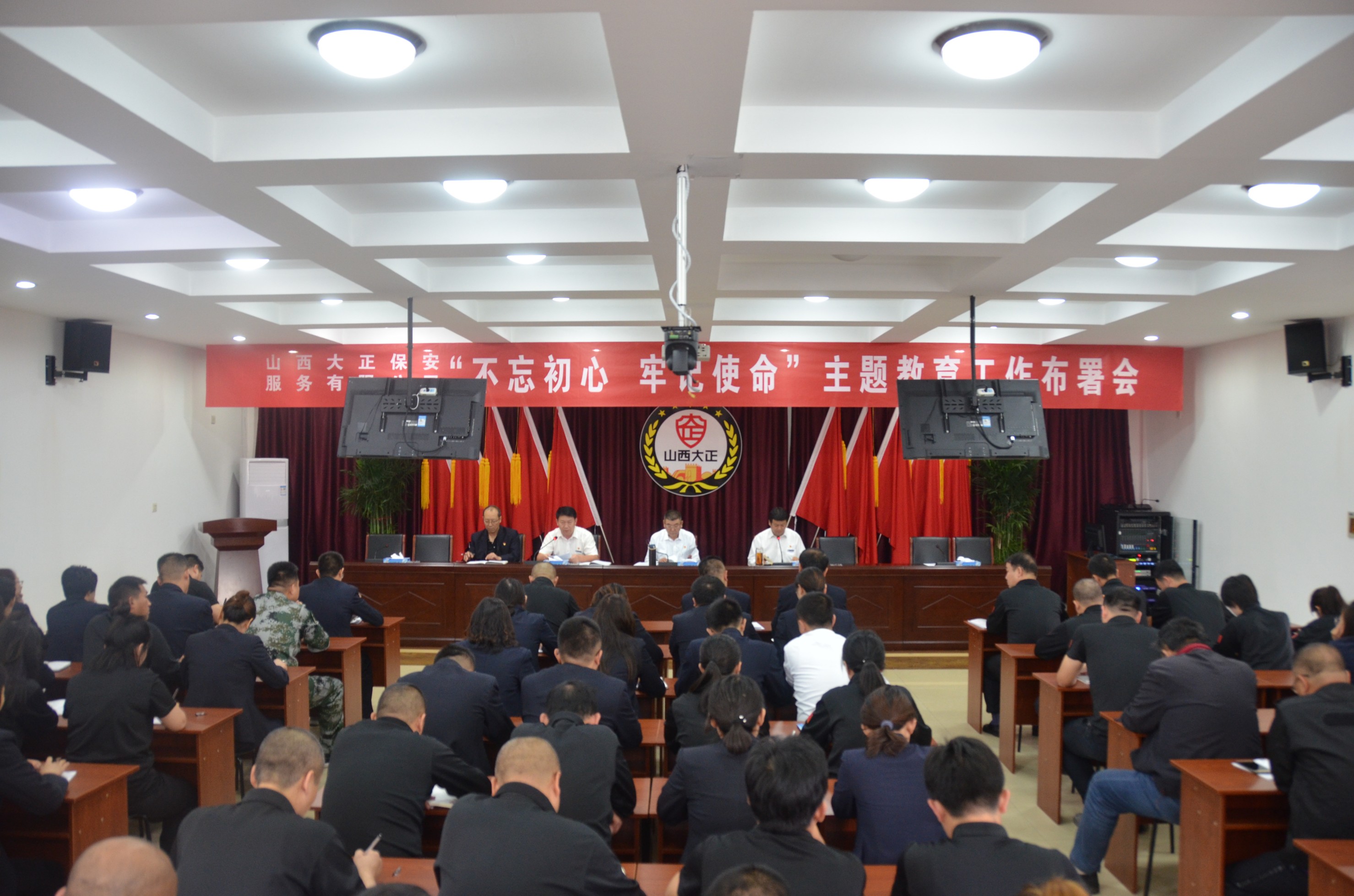 9月20日,山西大正保安服務有限公司召開“不忘初心、牢記使命”主題教育動員部署會議。黨委書記、董事長張躍生作動員部署,黨委副書記、副總經(jīng)理陳志平主持會議,公司領導、中層以上管理人員及機關全體員工參加會議。