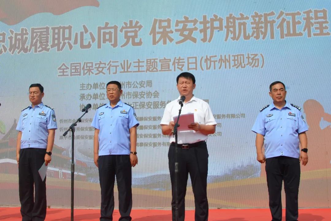 山西大正保安服務集團有限公司黨委副書記、總經(jīng)理、市保安協(xié)會常務副會長趙培宏代表忻州市保安協(xié)會向全市廣大保安員表示親切的慰問和誠摯的謝意。保安服務業(yè)是伴隨著改革開放和市場經(jīng)濟發(fā)展而興起的新興服務產(chǎn)業(yè)。而7月24日這個日子代表廣大保安員每周7天24小時全天候提供安全保障服務。大家夜以繼日奮戰(zhàn)在社會的各個角落、守護著萬家的燈火安寧,為這一天賦予了新的含義。他講到,近年來在市委市政府和政府職能部門的正確領導和高度重視下,我市保安服務業(yè)蓮勃發(fā)展,在服務經(jīng)濟社會發(fā)展、服務群眾、健全社會治安歷控體系和增加社會就業(yè)等方面,發(fā)揮了越來越重要的作用。