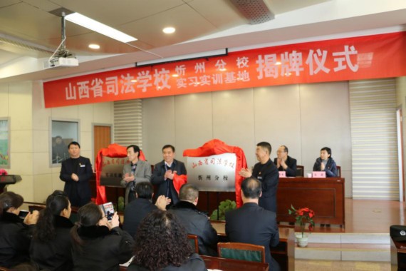 山西省司法學(xué)校忻州分校于2018年1月8日在我公司實訓(xùn)基地掛牌。公司總經(jīng)理張躍生、副總經(jīng)理趙培宏、王明生、總經(jīng)理助理羅鵬生、蔡車峰、高秀生、宋林兔等領(lǐng)導(dǎo)參加了掛牌儀式。