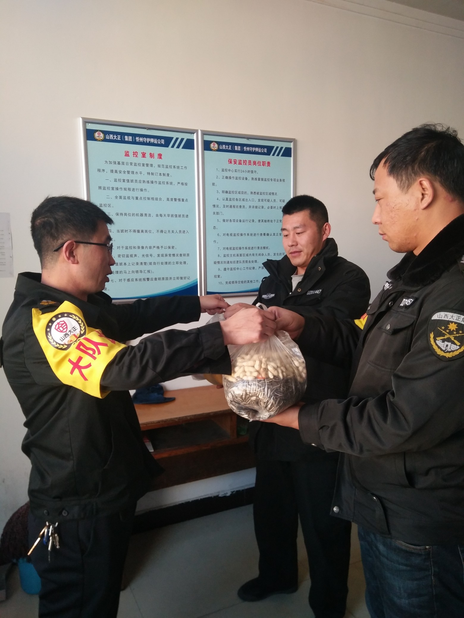 在全市人民群眾歡度新春佳節(jié)之際,山西大正保安服務(wù)有限公司全體守押人員依然戰(zhàn)斗值守在保安全、保穩(wěn)定工作一線,以飽滿的工作熱情和高度負(fù)責(zé)的工作態(tài)度,努力營造了歡樂、祥和、平安的節(jié)日氛圍,確保了全市春節(jié)期間社會治安穩(wěn)定,為群眾歡度春節(jié)提供了堅強(qiáng)有力地安全保障,以實際行動證明,山西大正是客戶單位值得信賴的守押隊伍。