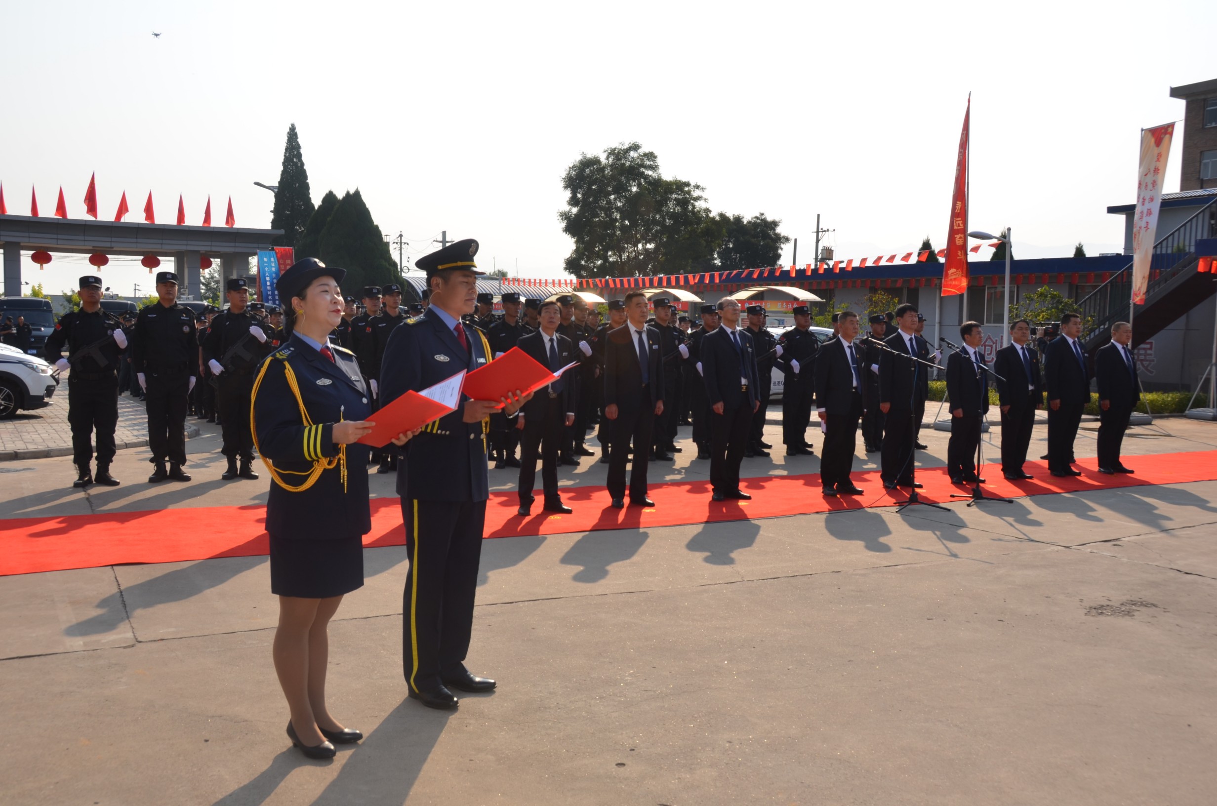 在中華人民共和國(guó)成立70周年即將來(lái)臨之際,為進(jìn)一步提高廣大干部職工的愛(ài)國(guó)意識(shí),營(yíng)造濃厚的愛(ài)國(guó)愛(ài)企氛圍,激發(fā)正能量、提升凝聚力。9月27日,山西大正保安服務(wù)有限公司在公司城南駐地隆重舉行莊嚴(yán)的升旗儀式。黨委書(shū)記、董事長(zhǎng)張躍生作重要講話(huà),公司黨委委員、副總經(jīng)理趙培宏主持升旗儀式。王明生、邢春生、張瑞東、呂雙明等公司領(lǐng)導(dǎo)、機(jī)關(guān)各單位及基層九個(gè)分公司的400余名干部職工參加儀式。