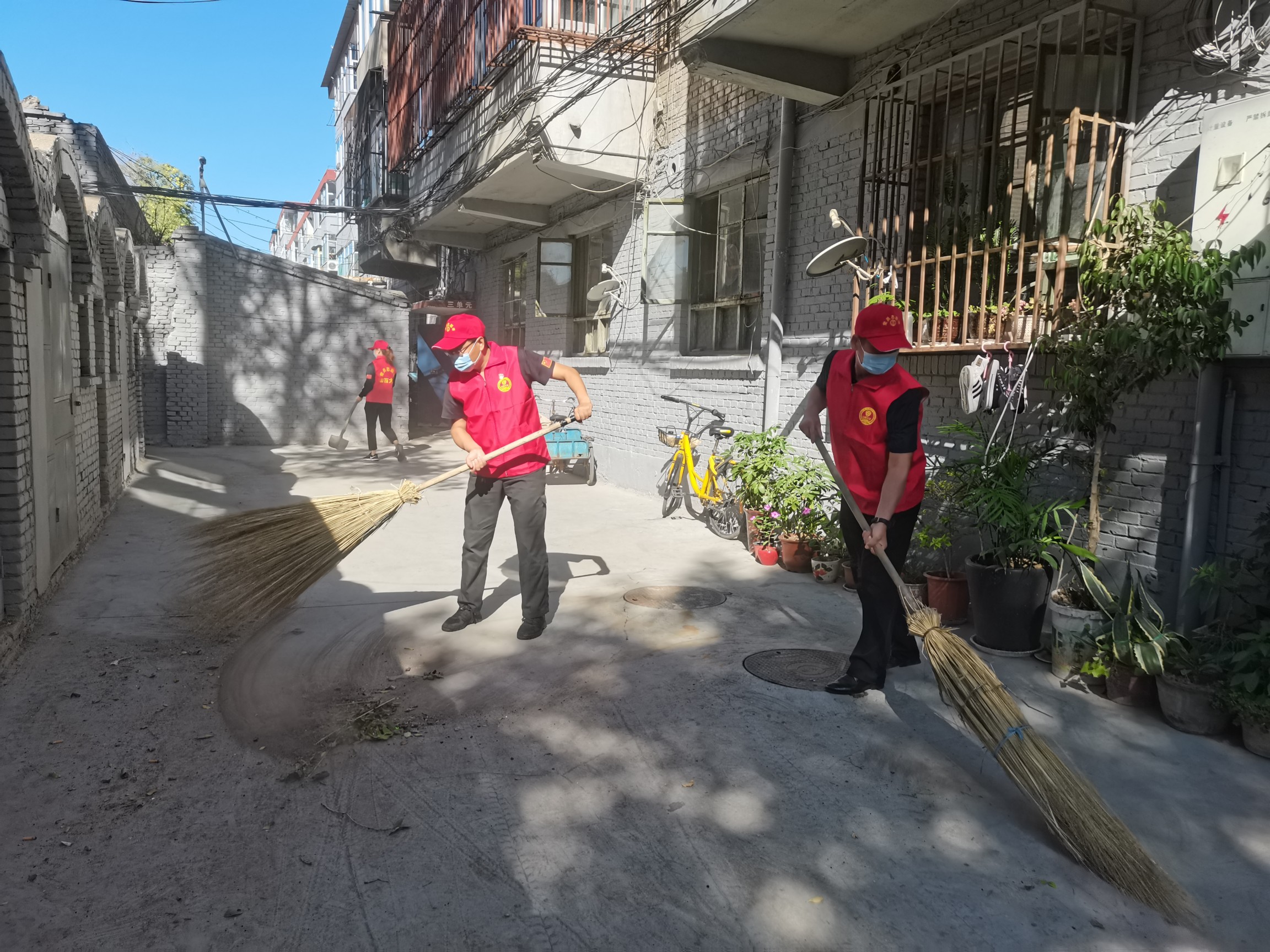時(shí)值九月,太陽(yáng)還是炙熱的烘烤著大地,我公司志愿者頂著炎炎烈日在小區(qū)內(nèi)進(jìn)行衛(wèi)生大清掃,志愿者對(duì)小區(qū)的墻面進(jìn)行了清理,粘貼在墻面上的小廣告由于時(shí)間久,難以清理,志愿者們手持鏟子進(jìn)行細(xì)致的處理。墻面上面噴印的小廣告,志愿者們用清水進(jìn)行了清理;洗刷墻壁完畢,志愿者們攜帶掃帚,鐵鍬、垃圾袋等清掃工具對(duì)院子里面的路面、樓道、死角的白色垃圾、廢棄堆放物等進(jìn)行集中、徹底的清理清運(yùn);志愿者們手拿抹布對(duì)小區(qū)的樓門(mén)和樓梯欄桿進(jìn)行了一絲不茍的擦拭;金秋時(shí)節(jié),院子里面的落葉較多,自愿者們專(zhuān)門(mén)對(duì)地面上面的落葉進(jìn)行了集中清理;由于屬于老舊小區(qū),自行車(chē)、電動(dòng)車(chē)亂,沒(méi)有專(zhuān)門(mén)的區(qū)域進(jìn)行自行車(chē)、電動(dòng)車(chē)的停放,志愿者們?cè)谛^(qū)內(nèi)專(zhuān)門(mén)劃了自行車(chē)、電動(dòng)車(chē)停放區(qū),使自行車(chē)、電動(dòng)車(chē)停放有序,讓整個(gè)環(huán)境看起來(lái)更加干凈整潔。