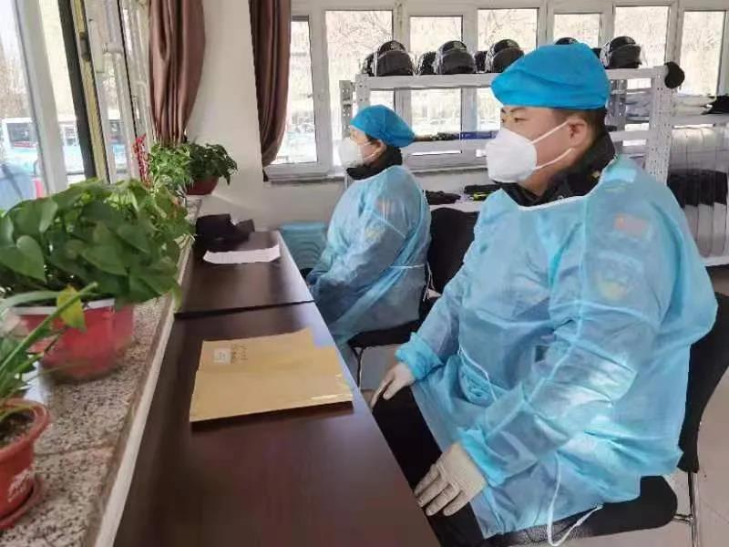 市醫(yī)院中隊(duì)全天負(fù)責(zé)從忻州市人民醫(yī)院西門、北門、東南門進(jìn)入院內(nèi)的所有人員行程碼、健康碼及車輛的檢查工作。他們冒著嚴(yán)寒、披星戴月,身著防護(hù)衣,嚴(yán)格履行職責(zé)。特別是新加入的幾名女隊(duì)員,巾幗不讓須眉,戴上口罩,安能辨出女兒身?