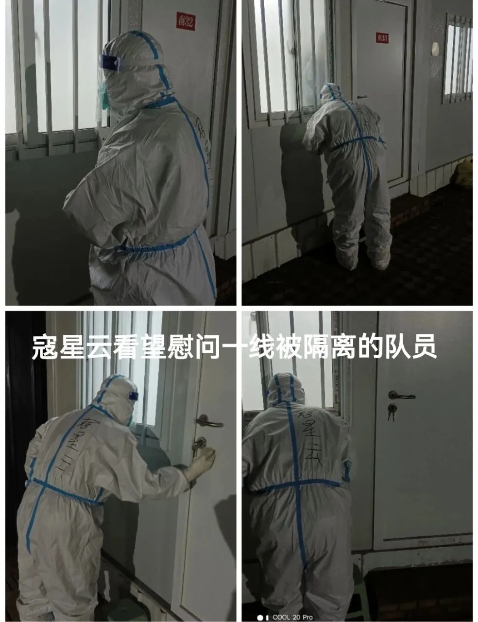 關(guān)心溫暖人心,關(guān)懷凝聚力量,領(lǐng)導(dǎo)的關(guān)心是對一線員工的最大安慰和精神鼓舞,組織的關(guān)懷是凝聚力量、激發(fā)斗志的不竭動力,不論是出征前的動員講話,還是送別隔離區(qū)一線隊員的鼓勵和問候,以及在微信群里的囑咐鼓勁,寇星云同志始終把大家的個人安危放在第一位,時刻叮囑隊員們必須做好自我防護,確保自身安全,堅決杜絕內(nèi)部感染傳播,只有自己安全才能更好地服務(wù)病患、服務(wù)好隔離人員,才能高質(zhì)量、高標(biāo)準完成我們的使命任務(wù),才是對家人、對社會的真正負責(zé)。他鼓勵大家發(fā)揮守押隊伍能征善戰(zhàn)、沖鋒陷陣、挑戰(zhàn)自我,苦干實干的優(yōu)良作風(fēng),堅定抗疫有我、戰(zhàn)疫必勝、疫情不散、堅守陣地的信心和決心。對在工作中因勞累過度、身體受傷、出現(xiàn)不適的隊員更是關(guān)心備至、體貼入微,親自看望受傷隊員田振華,關(guān)心照顧因低血糖暈倒在一線的隊員吳彩霞,慰問在隔離宿舍和方艙隔離區(qū)因勞累過度出現(xiàn)身體不適的13名隊員,給他們送去生活用品,并和他們進行親切地交談,帶去組織的關(guān)懷,領(lǐng)導(dǎo)的關(guān)心,凝聚人心,鼓舞士氣。