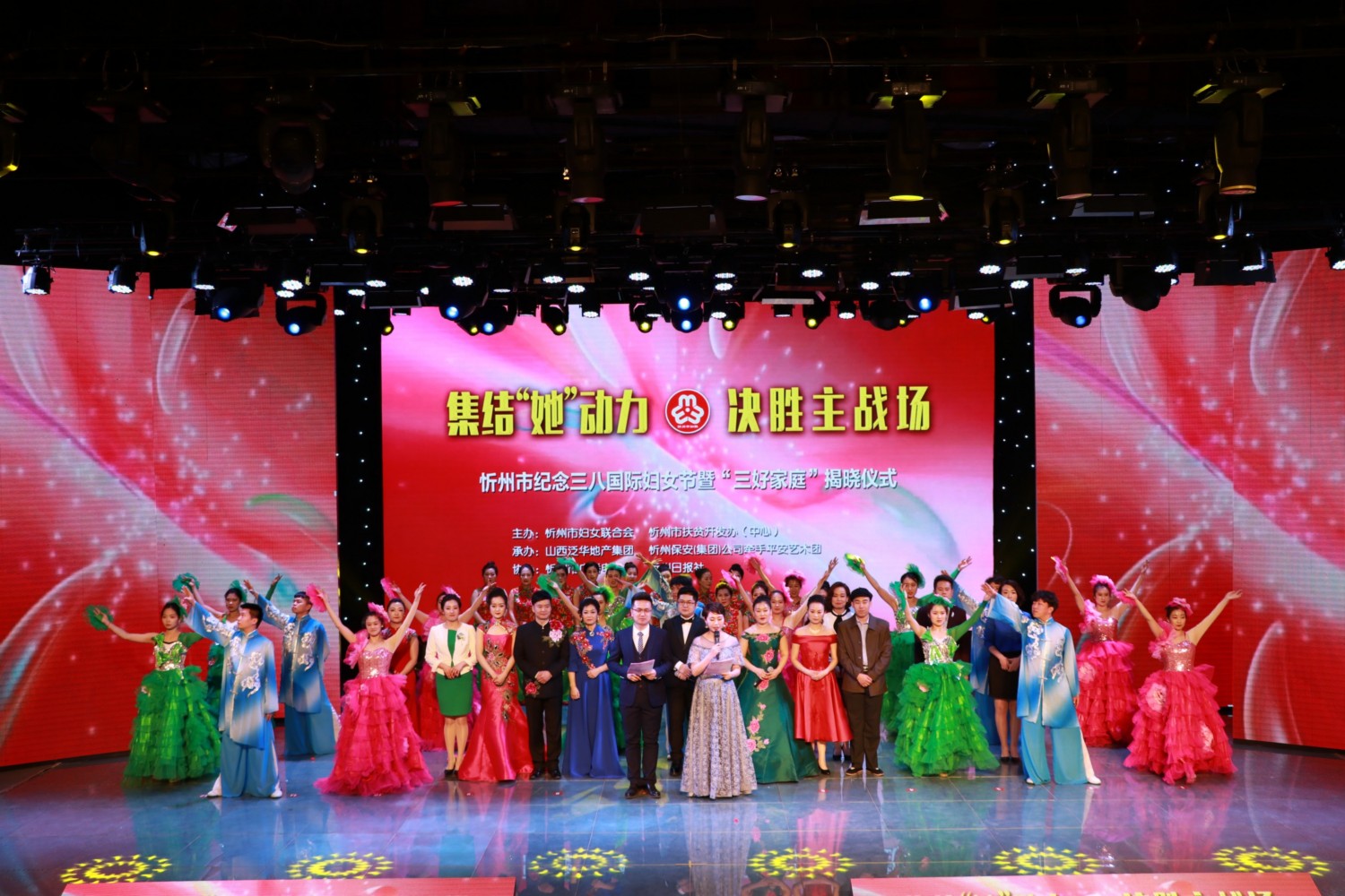 我公司主要承擔此次揭曉儀式的演出任務,演職人員以歌舞、小品的表演形式再現(xiàn)了巾幗優(yōu)秀事跡,使得臺下觀眾深受鼓舞和感動。公司將在今后建設忻州的征程中,自強不息、奮勇向前,展巾幗風采,貢獻全部力量。