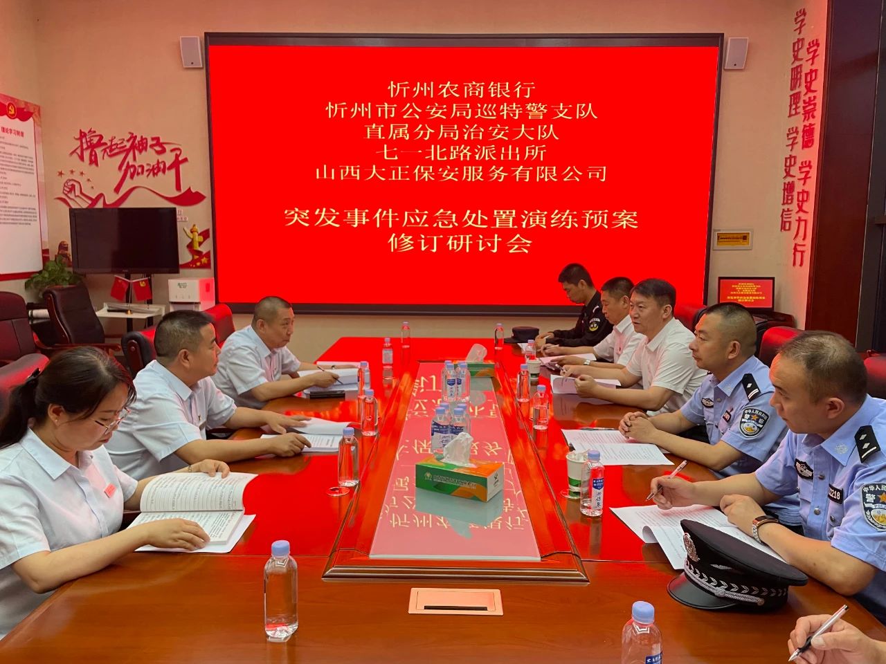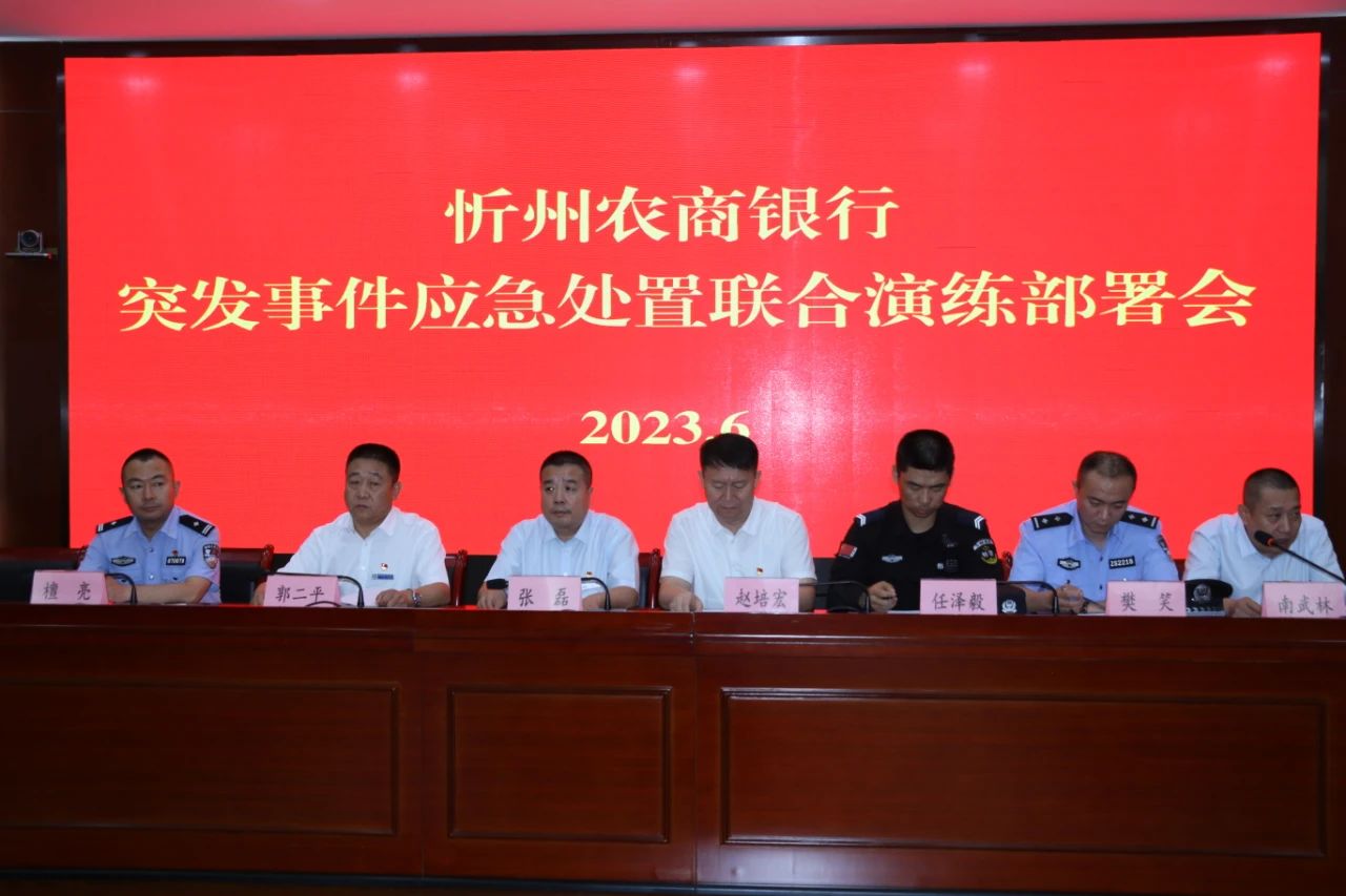 6月26日,山西大正億通保安安全技術有限公司與忻州農(nóng)商銀行和平西街營業(yè)部聯(lián)合舉行銀行自助設備防打砸損壞、防非法安裝設備聯(lián)合應急演練,山西大正保安服務集團有限公司黨委書記、董事長趙培宏、農(nóng)商行黨委書記、董事長張磊出席并講話,山西大正億通保安安全技術有限公司經(jīng)理郭二平出席部署會。農(nóng)商行營業(yè)點全體安保人員及農(nóng)商行保衛(wèi)部全員等相關工作人員參加演練部署會。演練還特邀忻州市公安局巡特警支隊、直屬分局治安支隊、七一北路派出所等民警對演練進行現(xiàn)場指導并配合演練。