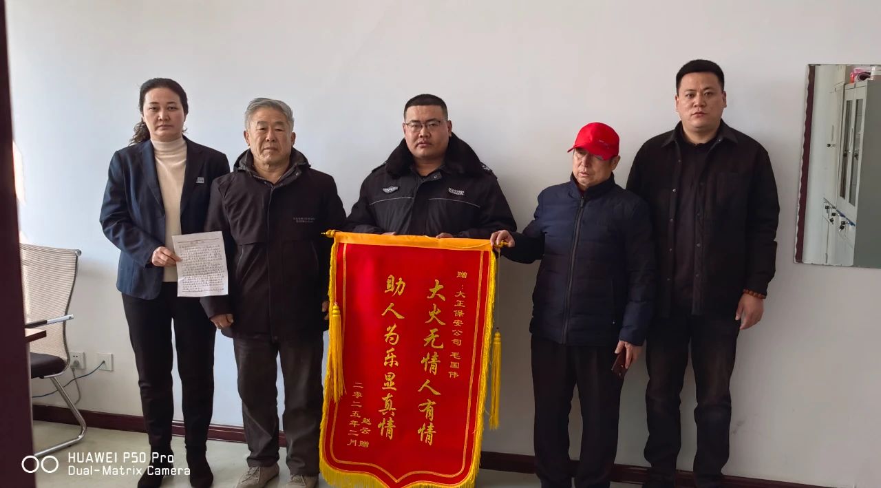 2025年2月25日上午,忻州市保安服務(wù)公司迎來感人一幕:兩位六旬老人手捧一面繡有“大火無情人有情,助人為樂顯真情”的錦旗和一封情真意切的感謝信,對公司保安員毛國偉的英勇行為進行表彰。