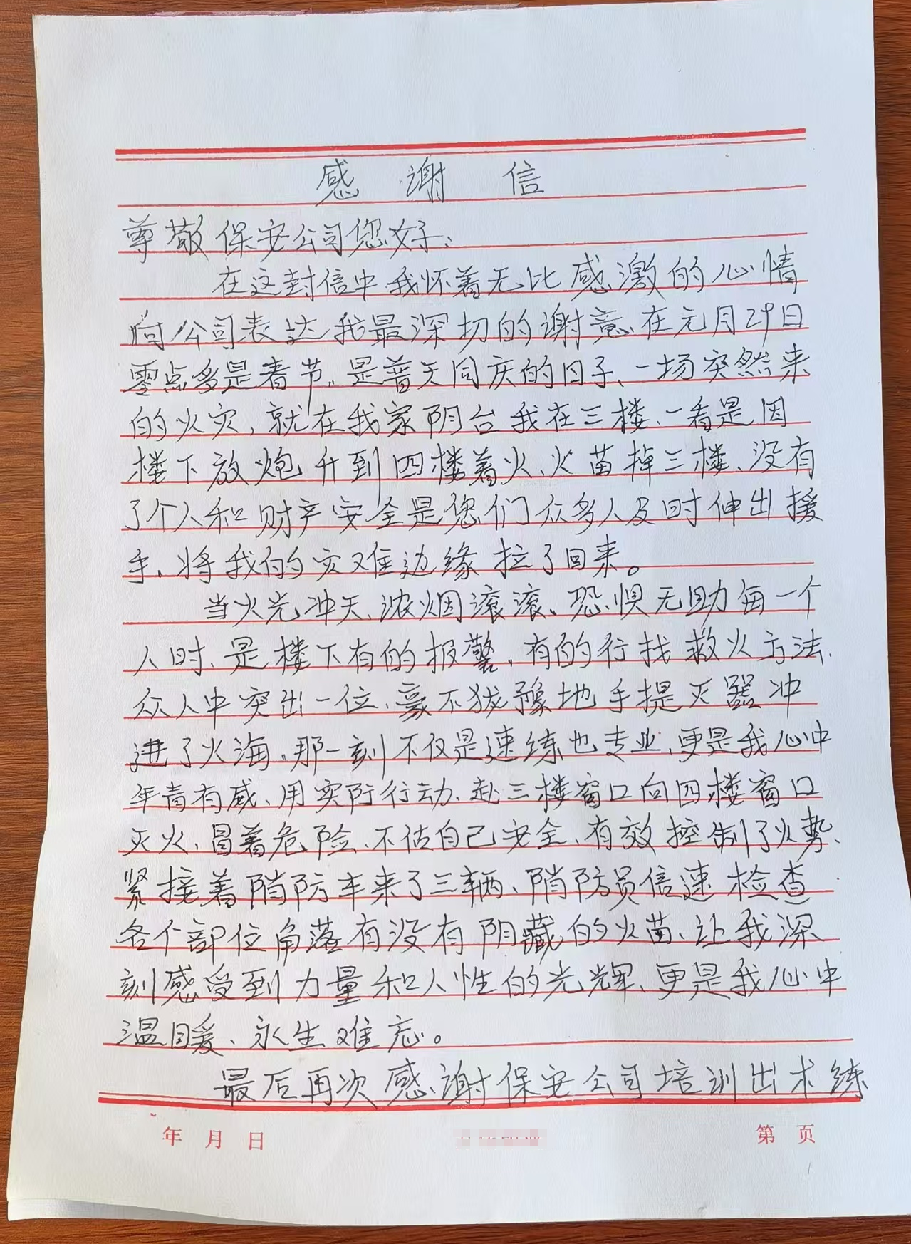 在感謝信中,兩位老人用質(zhì)樸的語言表達了對毛國偉的深深感激,并對忻州市保安服務(wù)公司表示高度贊揚。此次應(yīng)急處置事件不僅展現(xiàn)了毛國偉個人的專業(yè)素養(yǎng)和勇敢精神,更是忻州市保安服務(wù)公司注重安全生產(chǎn)、常態(tài)化開展消防安全培訓(xùn)和應(yīng)急處突演練的成果體現(xiàn)。